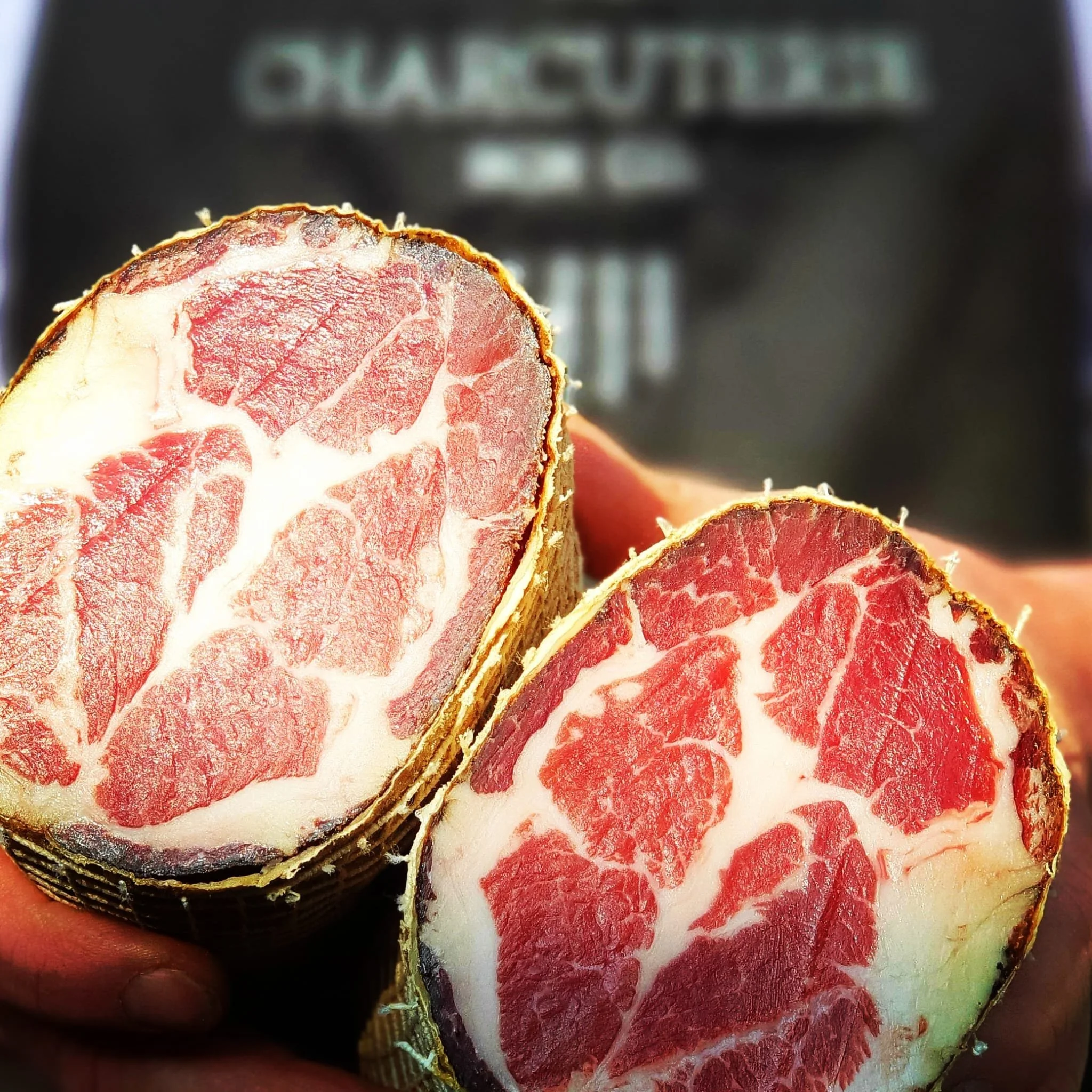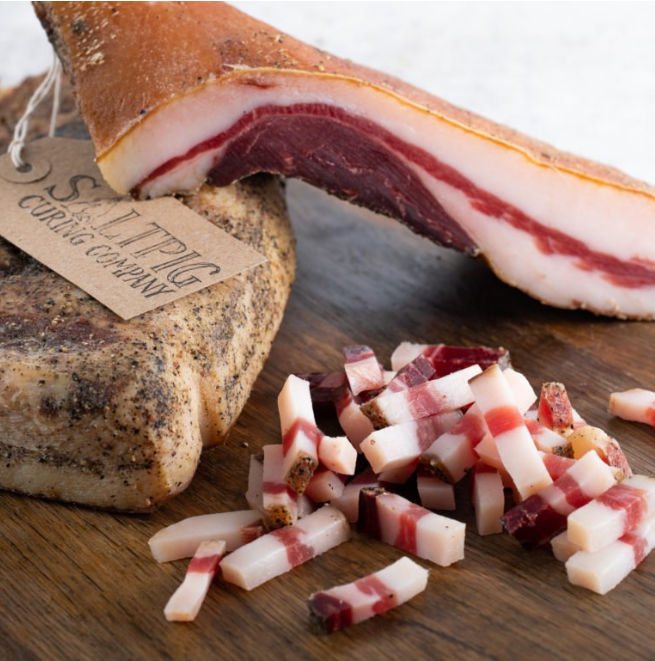 Cured Meats Sliced To Order Our house selection of premium British cured meats from top producers around the UK. Available sliced to order Smoked Cornish Culatello from £4.25 Mangalitsa Air Dried Ham - Beal's Farm Charcuterie, Sussex from £5.50 Bresaola - Cobble Lane Cured from £4.00 Sold out Lomo - Somerset Charcuterie from £4.00 Sold out Cured Cheek (Guanciale) - Salt Pig Curing Co, Cotswolds £4.50 Spianata Salami - Duchy Charcuterie, Cornwall from £3.75 N1 Sopresata - Cobble Lane Cured, London from £3.50 Sold out Garlic & Pepper Salami - Salt Pig Curing Co, The Cotswolds from £4.00 Achari Salami - Tempus Charcuterie, Surrey from £4.00 Venison & Green Peppercorn Salami - Great Glen Charcuterie, Scottish Highlands from £3.50 Spiced Loin - Tempus Charcuterie, Surrey from £4.00 Lonza - Somerset Charcuterie from £4.00 Chestnut Smoked Coppa - Tempus Charcuterie, Surrey from £4.00 Sold out House Salami - Tempus Charcuterie, Surrey from £4.00 Rebel Coppa - Rebel Cures, Brighton from £4.00 Air Dried Smoked Ham, Salt Pig Curing, Cotswolds from £4.25 King Peter Ham - Tempus Charcuterie, Surrey from £5.50 Dorset Bresaola - The Real Cure, Dorset from £4.00 Pancetta (Air Dried Smoked Belly) - Salt Pig Curing £4.50 Cotswold 'Nduja - Salt Pig Curing Co £4.50 Sobrasada - Salt Pig Curing Co, Cotswolds £4.50 Sold out Spiced Coppa - Tempus Charcuterie, Surrey from £5.00
